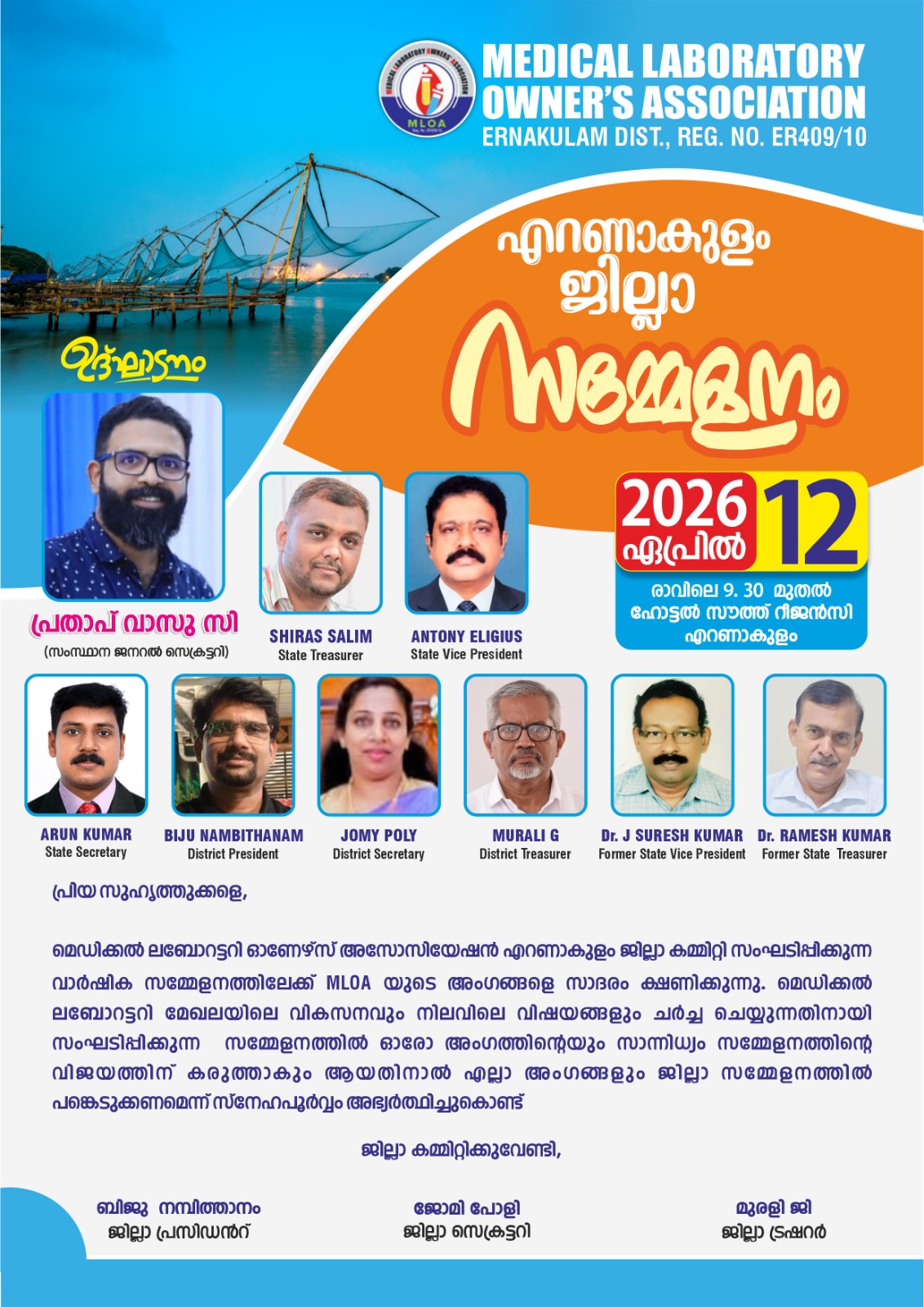 മെഡിക്കൽ ലബോട്ടറി ഓണേഴ്സ് അസോസിയേഷൻ ജില്ലാ സമ്മേളനം എറണാകുളത്ത്.