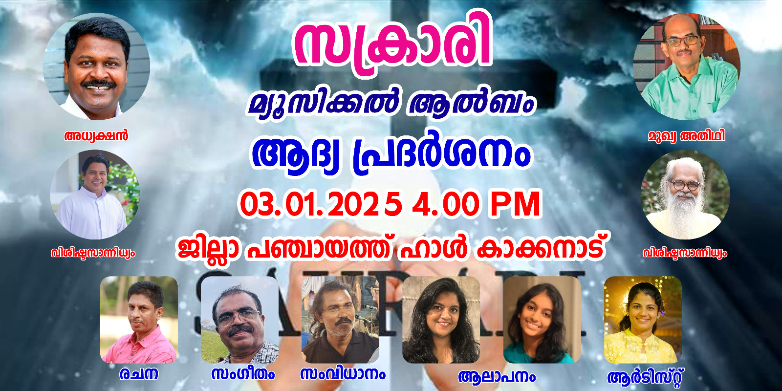 എറണാകുളം : വ്യത്യസ്തതകളുമായി പുതിയ ക്രിസ്തീയ ഭക്തിഗാന മ്യൂസിക് ആൽബം സക്രാരി ‘ വെള്ളിയാഴ്ച പ്രകാശനം ചെയ്യുന്നു.കുർബ്ബാന സ്വീകരണ വേളയിൽ പാടുവാൻ കഴിയുന്ന ദിവ്യകാരുണ ഗീതമാണ് ” സക്രാരി ” ഹൃദ്യമായ നിരവധി ഗാനങ്ങൾ രചിച്ചിട്ടുള്ള ശ്രീ ജോസഫ് അലക്സാണ്ടറുടെ ഹൃദയത്തിൽ തൊടുന്ന വരികൾ ലളിത സുന്ദരമാണ് ‘വർത്തമാനകാലത്തെ ബഹളമയമായ സംഗീതത്തിൽ നിന്നും വിഭിന്നമായി വരികളുടെ അർത്ഥം ഒട്ടും ചോർന്നുപോകാത്ത വിധത്തിൽ തികച്ചും ഭക്തിയുണർത്തുന്ന സംഗീതമാണ് വയലിൻ ജസ്റ്റിൻ ഈ ഗാനത്തിന് നൽകിയിരിക്കുന്നത്.